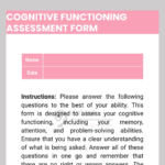 Evaluate cognitive abilities with Cognitive Functioning Assessment. Assess memory, attention, language, and problem-solving through standardized tests and questionnaires. This tool aids healthcare professionals in diagnosing impairments and developing interventions. Administered by qualified experts, it’s crucial for accurate interpretation. Creators are not liable for actions based on results.