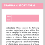 Gather trauma history with our Trauma History Form. Explore types, frequency, and impacts of traumatic events, alongside coping mechanisms. This tool aids mental health professionals in assessing trauma scope and designing treatments. However, it’s one part of a comprehensive evaluation, to be used alongside other tools and clinical interviews.