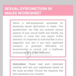 Delve into sexual function with our “Sexual Dysfunction in Males Worksheet.” Reflect on symptoms, triggers, thoughts, and emotions related to sexual dysfunction. This resource isn’t a substitute for professional help. For personalized support and treatment options, consult a qualified healthcare provider or therapist specializing in sexual health.