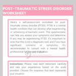 Address PTSD symptoms with our “PTSD Worksheet.” Reflect on triggers, thoughts, emotions, and coping strategies related to trauma. This tool isn’t a substitute for professional help. For personalized support and treatment options, consult a qualified mental health professional.