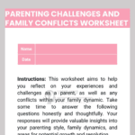 Navigate family conflicts with our “Parenting Challenges and Family Conflicts Worksheet.” Reflect on common challenges, communication breakdowns, and conflicts for potential solutions. Not a substitute for professional help, consult a qualified therapist for personalized support in addressing these issues.